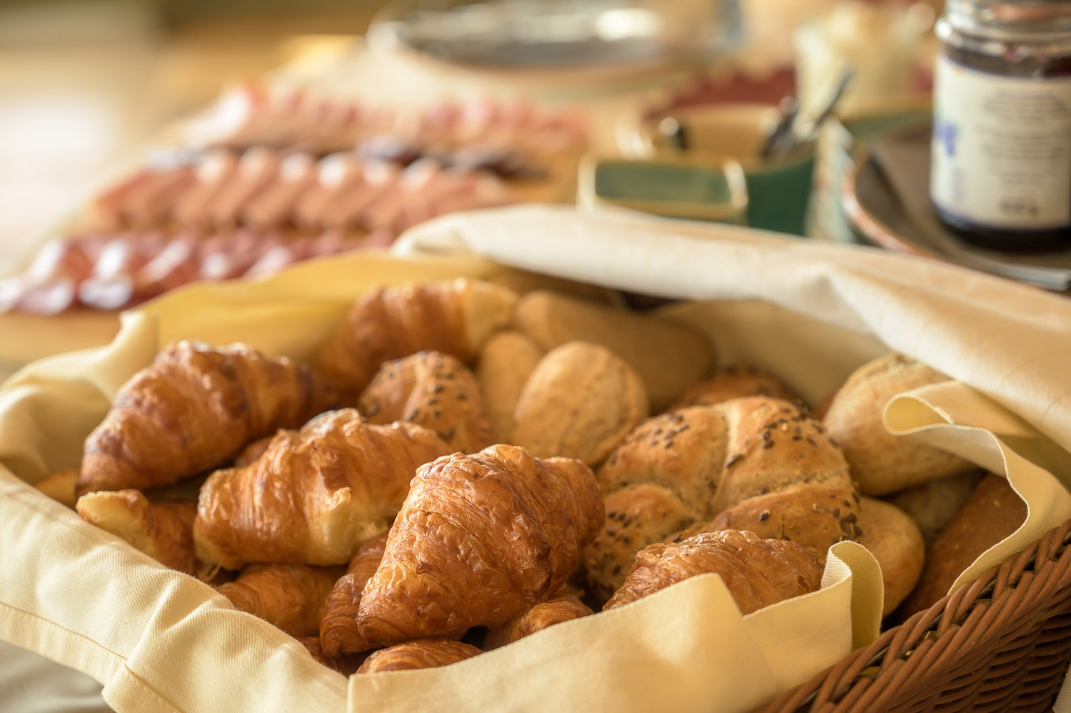 Frissensültek (4 fajta választható): Pankó morzsában sült sertés szűz, Házi sonkával és lajosi sajttal töltött sertésborda rántva, Zsályás filézett vasalt csirkecomb, Kakukkfüves sült kacsacomb, Fokhagymás mustáros tarja steak, Rántott gomba és karfiol
