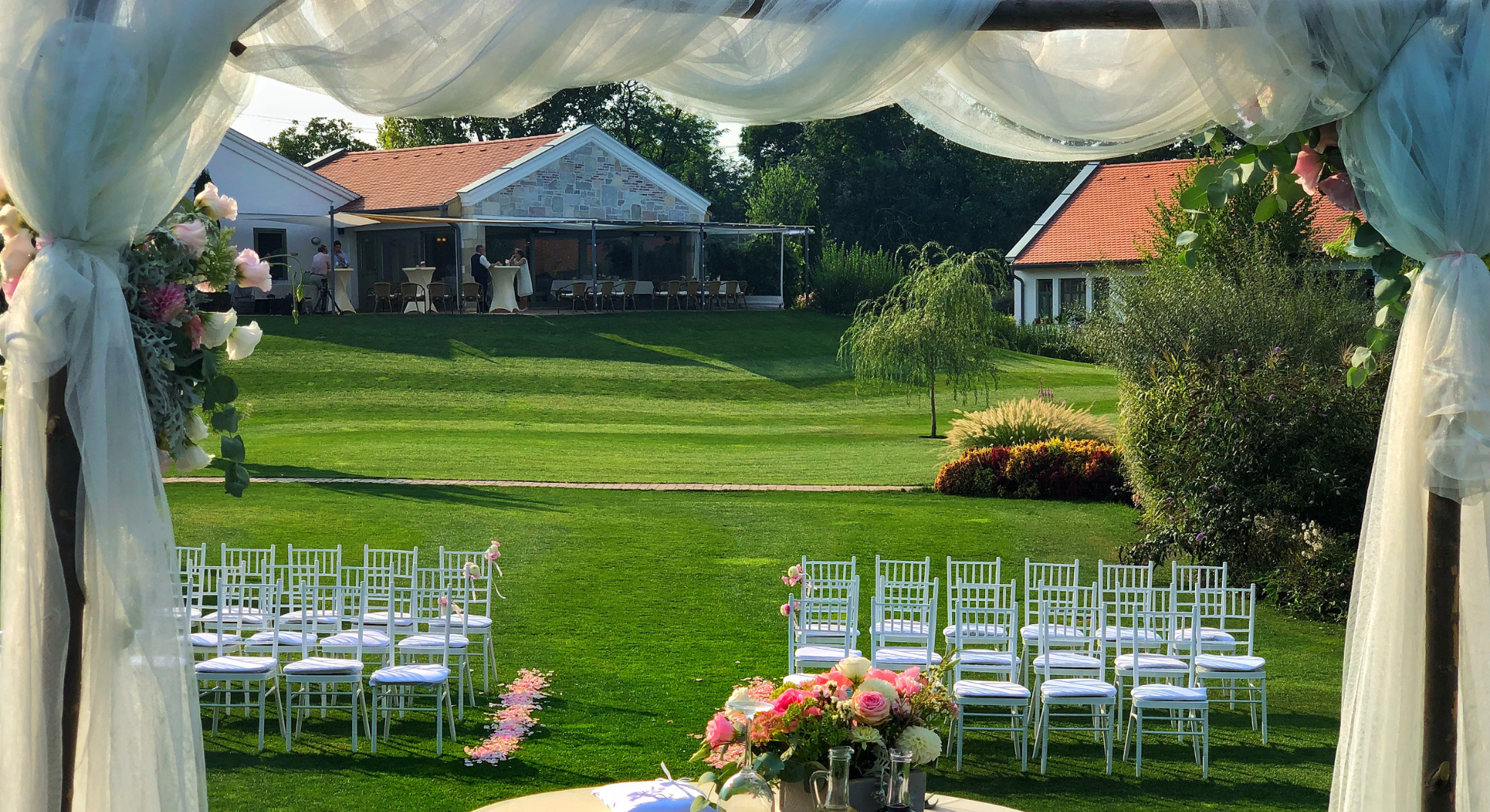 A közel 1 Ha-os parkunk ideális a polgári szertartás helyszínének. Kívánságukra helyi anyakönyvvezető vendégházunkban előzetesen egyeztetve bonyolítja a szertartást.