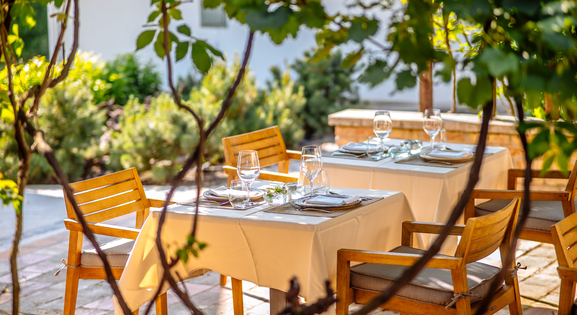 Pinceéttermünk fedett és szőlőlugasos teraszain 30 + 15 fő tud helyet foglalni,